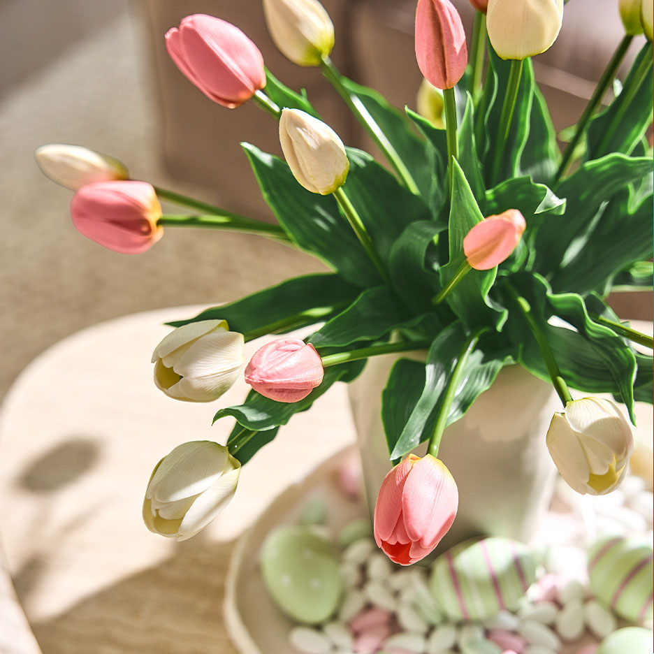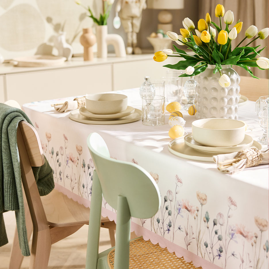A trendi színekben és mintákban pompázó terítők nem csak a tányérok és csészék csillogását biztosítják. Tisztán és vasalva trendi alternatívát jelentenek a szalvéták helyett. Ha az első réti virágokat vagy virágzó gallyakat teszel rá, tökéletes a tavaszi-friss hangulat, ha pedig pasztellszíneket teszel az asztalra, nem kell erőlködnöd - a húsvéti hangulat magától jön. Mindössze egy pasztellszínű terítőre, tavaszi virágokra, például tulipánokra vagy nárciszokra és aranyos húsvéti nyuszifigurákra van szükséged. Nincs időd a virágárushoz menni? A valódi tapintású, mesterséges tulipáncsokrok gyakorlatilag megkülönböztethetetlenek a virágágyásból származó eredetitől! Az origami, a papírhajtogatás művészete nagyon népszerű dekorációként. A nyuszik, madarak és tojások grafikus vonalvezetésű papírművészeti alkotásokként inspirálnak, amelyeket elegáns poharakba és edényekbe rendezhetsz. A kezdő utasításokat rögtön megérted, így fogj magadnak egy kreatív, tavaszias megjelenésű készletet az utolsó pillanatos dekorációkhoz. Semmi sem lehet egyszerűbb! Egyszerűen rendezz el néhány húsvéti tojásfüggőt a kertből származó csinos ágakon, vagy helyezd a frissen főtt tojásokat egy húsvéti megjelenésű dekoratív kosárba - kész!
