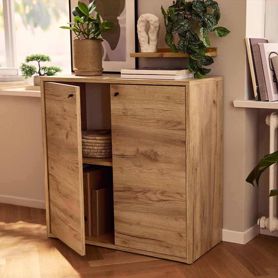 Egy kis káosz megengedett a nappaliban. Végül is itt önmagad lehetsz. A rendrakás tehát nem a szigorú rendrakásról szól, hanem a jó közérzetről. A bútoroknak itt nagy szerepük van: a zárt frontú lowboardok vagy komódok nyugodt benyomást keltenek - függetlenül attól, hogy az ajtók mögött rendetlenség van-e. Ha szereted a nyitott polcokat, egyszerűen tárolhatod a holmikat csinos tárolódobozokban és textilhatású kosarakban, a kosarak pedig igazi mindenesei a rendezett otthonnak. A játékok, takarók vagy hobbiszerek tökéletesen elférnek a kosarakban a kanapé vagy a fotel mellett - és mindig kéznél vannak.