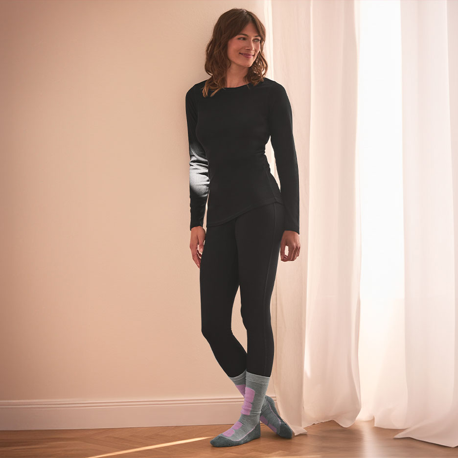 A thermo ruházatot a megfelelő rétegekben kell viselni. A legfontosabb az első réteg, amely a testkontaktus révén hőpárnát képez. A sportalsó vagy például a termikus funkcionális póló tökéletesen illeszkedik, és teljesen befedi a bőrt. Keresd a légáteresztő szálakat, és válaszd a megfelelő méretet. Egy eső- vagy szélálló felső réteg - például egy női kabát - lehet valamivel nagyobb. Fordíts különös figyelmet a mandzsetták illeszkedésére és a megfelelő hosszúságra. Ne feledkezz meg róla, hogy a hő nagy része a fejen keresztül távozik - ezért viselj sapkát!